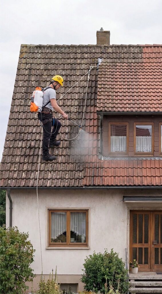 Ein gepflegtes Dach ist die Visitenkarte Ihrer Immobilie. Doch mit der Zeit setzen sich Moos, Flechten und Schmutz fest. Dies ist nicht nur ein optisches Problem, sondern ein technisches Risiko: Die Feuchtigkeit wird dauerhaft gespeichert, was die Ziegeloberfläche angreift und die Lebensdauer Ihres Daches drastisch verkürzt.